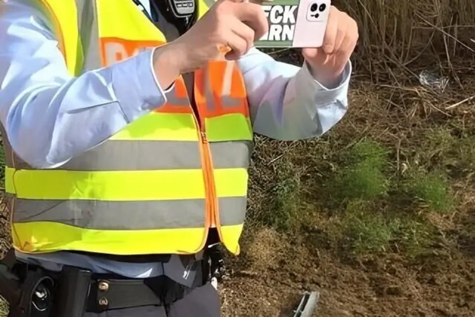 einen Polizeibeamten fotografiert, der sein privates Handy – das